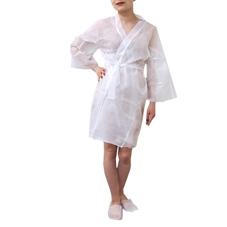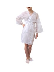 Käytännöllinen ja laadukas kertakäyttöinen kylpytakki on suunniteltu tarjoamaan korkean hygienian lisäksi mukavuutta kauneushoitohetkien aikana. Kertakäyttöinen kylpytakki on helppo hävittää käytön jälkeen, mikä vähentää hoitolan pyykkikuormaa.